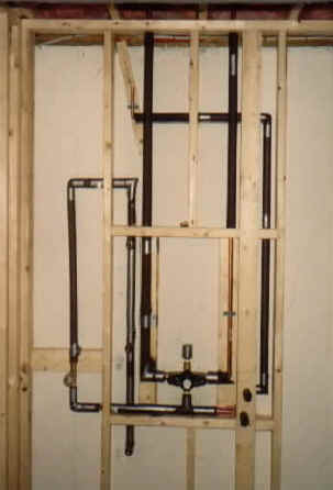 Rough supply plumbing work for the bathroom (five head shower) and bar area.