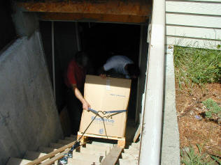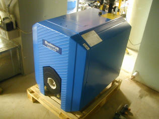This is not your typical home-improvement project! Before this project, the house had oil-fired forced hot air heating, and an incredibly expensive 80 gallon electric water heater. Long ago, I had wanted to ditch that water heater in favor of anything else. We have no gas line to the house and I didn't want propane tanks in my yard, so the easy, inexpensive solution was out. Those of you who are thinking solar right now have arrived at the wrong site. Direct-fired oil is possible, but I've heard that the lifespan is short on those. It turns out, however, that you can effectively heat your hot water indirectly and quietly if you have an adequately sized boiler. Knowing this, and the fact that the basement was going to be tough to zone heat with the forced hot air system, I plumbed in radiant baseboard heating when I put up the walls in anticipation of putting in a boiler eventually. Eventually came when we started watching movies in the new home theater in the spring of 2001. It was so cold that we decided we had to do something about it, and paying $7,000 to have it done was out of the question.